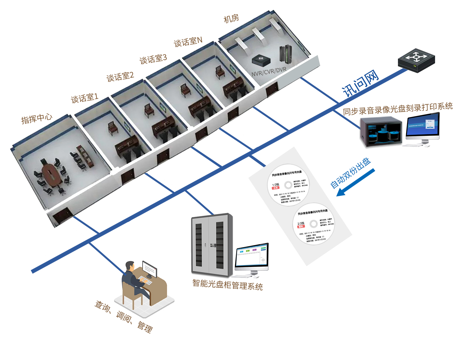 同步录音录像光盘打印刻录系统