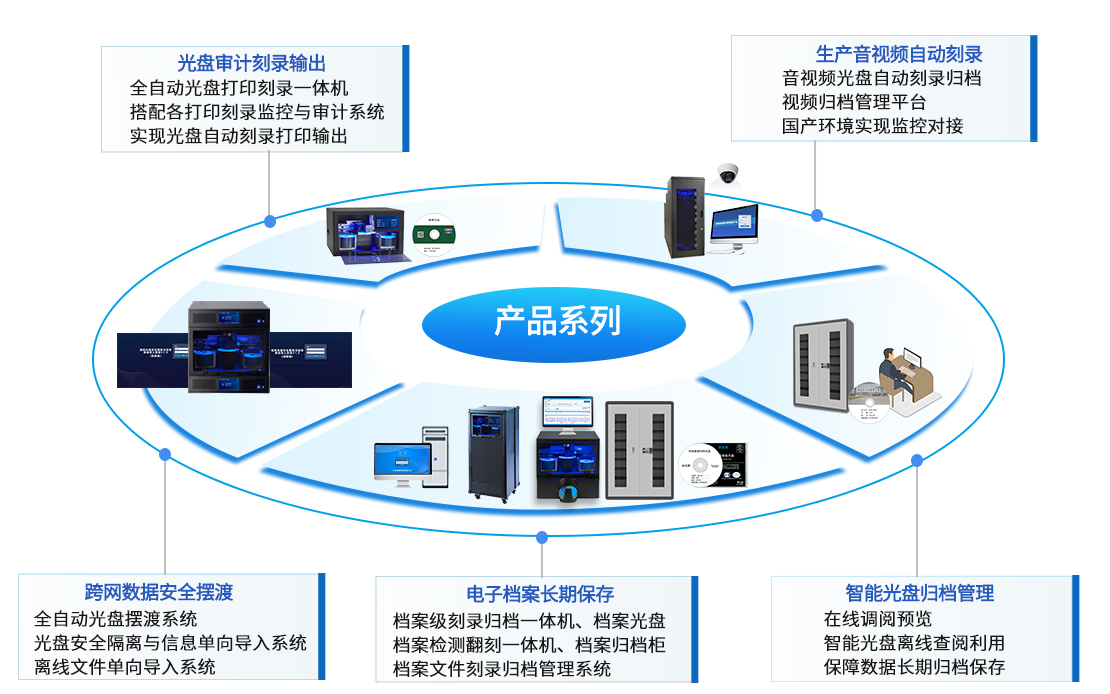 在保密行业,现代化及信息化技术发展赋能行业创新,对信息安全防护的高要求随之而来,保护信息安全是重中之重,泄密风险需严防,任何数据泄露都是对行业致命一击。光盘作为信息存储传递介质已成为诸多安全保密领域数据交互的主要手段,由于业务场景需要,面临着跨网数据安全摆渡、光盘刻录安全监控与审计、生产音视频光盘安全刻录、档案数据长期保存管理应用需求,筑牢保密安全防线,确保信息安全归档管理以及信息传输安全的可靠性,解决面临的信息安全和数据应用问题刻不容缓。
