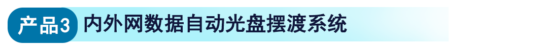 支持数据摆渡立即执行、执行一次、定时周期执行、每天/每周/每月定时执行等触发策略,集三员分立管理权限、数据检查校验、容错及提醒、多用户操作、日志管理、历史查询等功能于一体,利用自动化机械臂,实现光盘在光驱、盘仓间的自动流转,最终实现将数据从一个网络传递到另一个网络,两个网络之间严格物理隔离,内外网无任何连接,典型应用场景为网络单导、离线单导、单向导入。